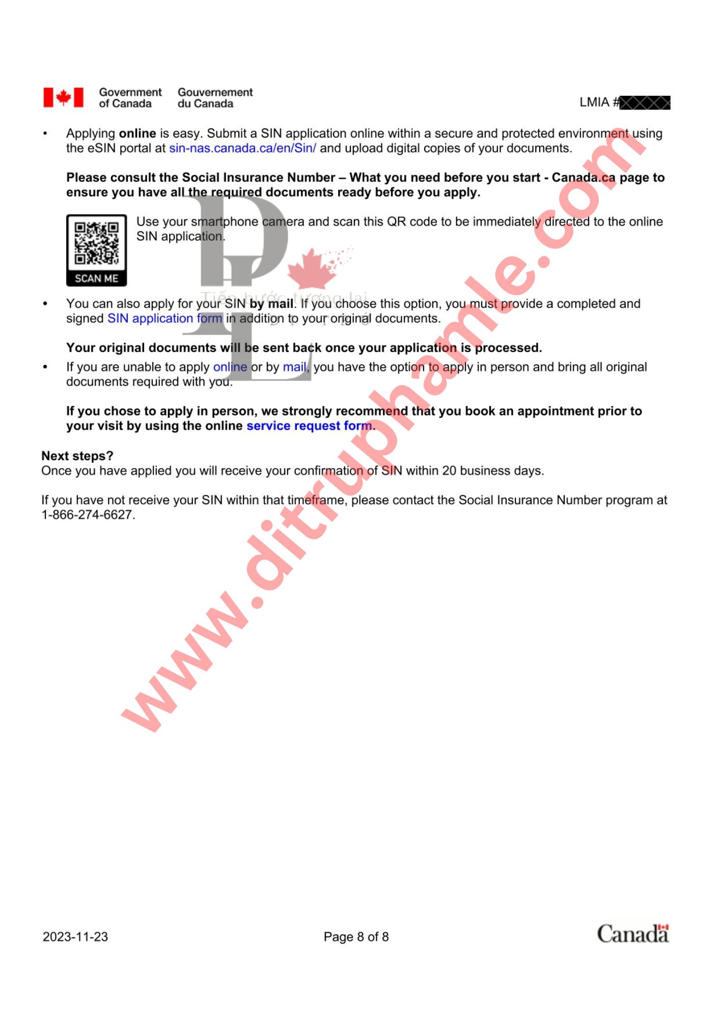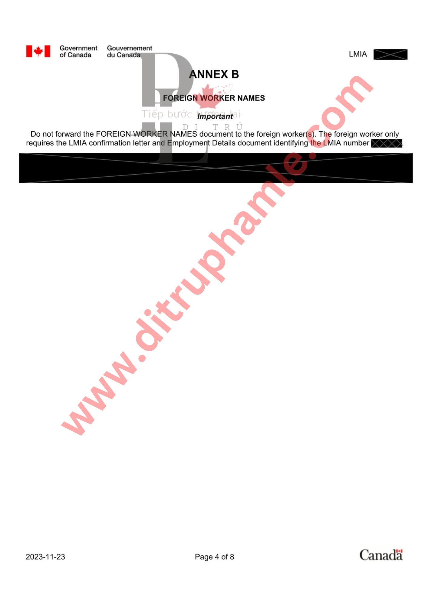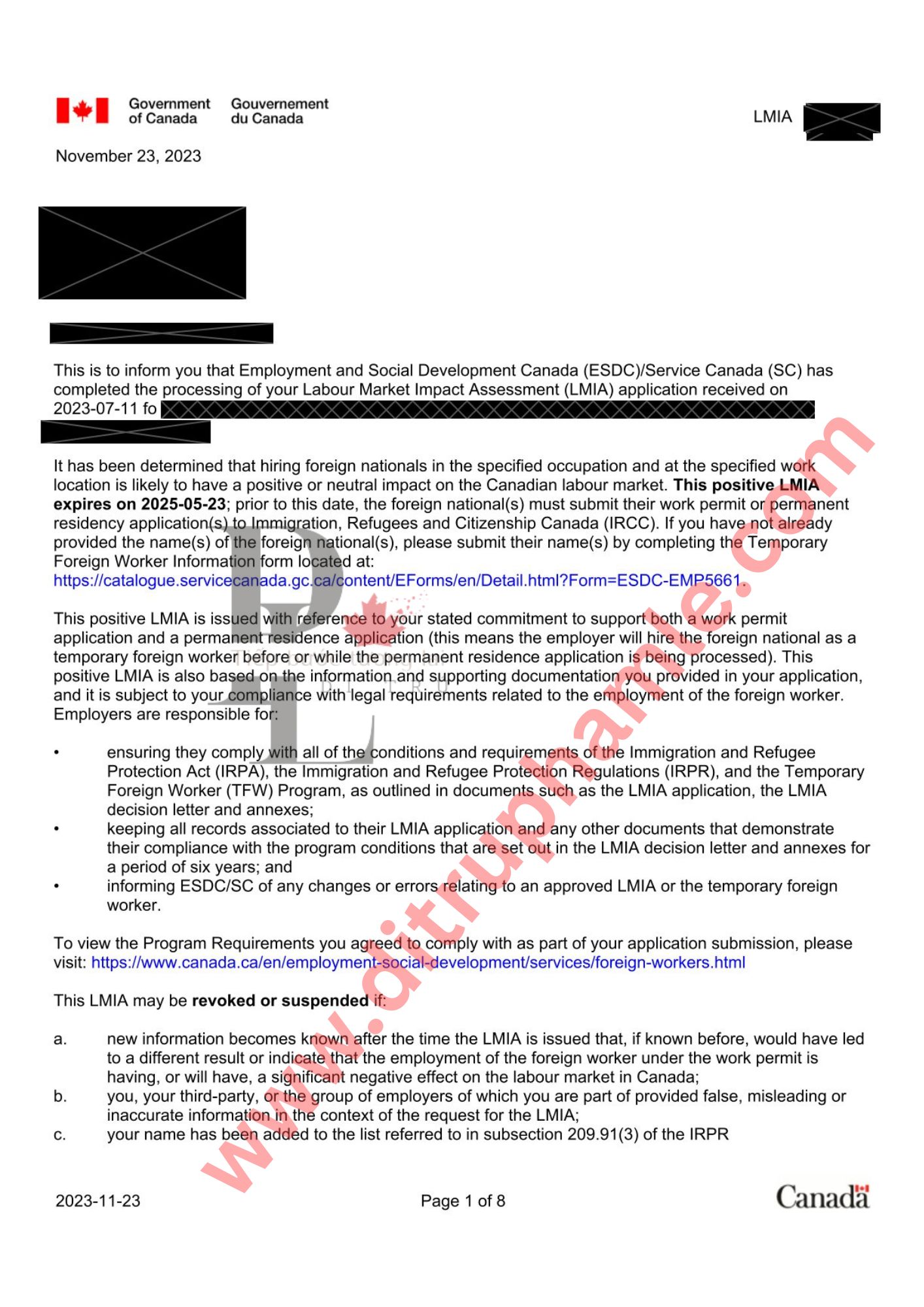 Thư thông báo phê duyệt cho phép tuyển dụng lao động nước ngoài của doanh nghiệp (LMIA) – trang 8