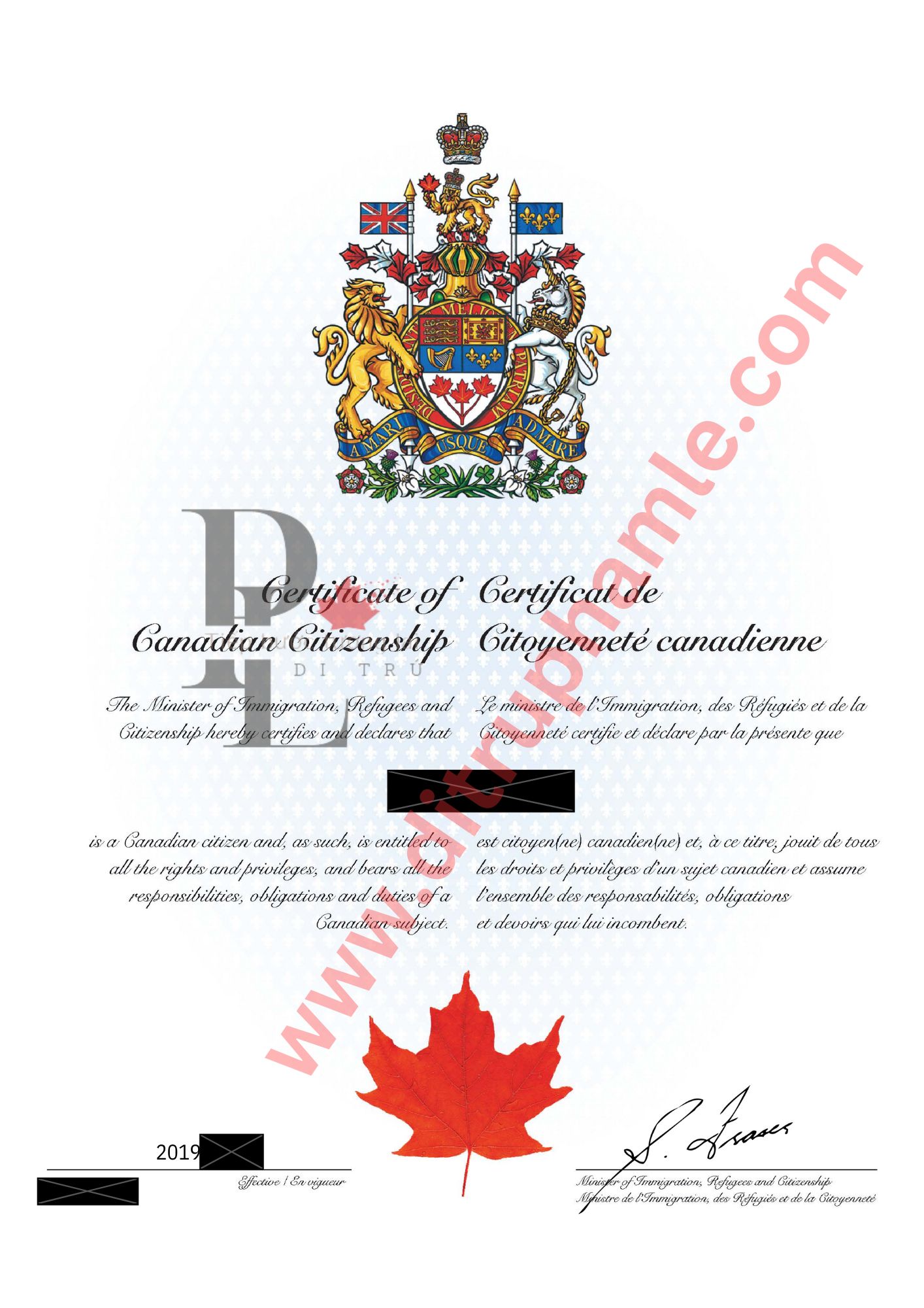 Chứng nhận quốc tịch Canada của khách hàng – trang 1