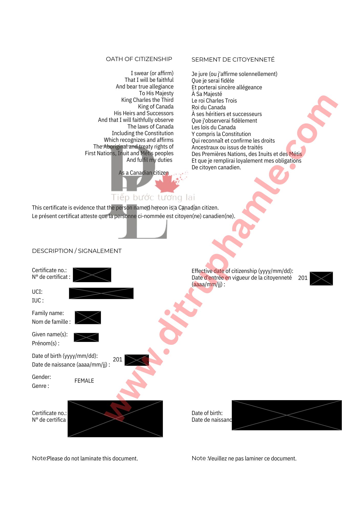 Chứng nhận quốc tịch Canada của khách hàng – trang 2