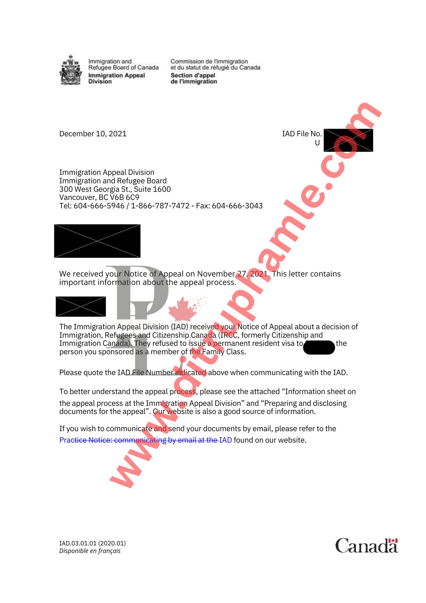 Thư mời khách hàng đến Canada để hoàn tất thủ tục cấp thẻ PR cho khách hàng thực hiện nộp đơn xin PR ngoài Canada