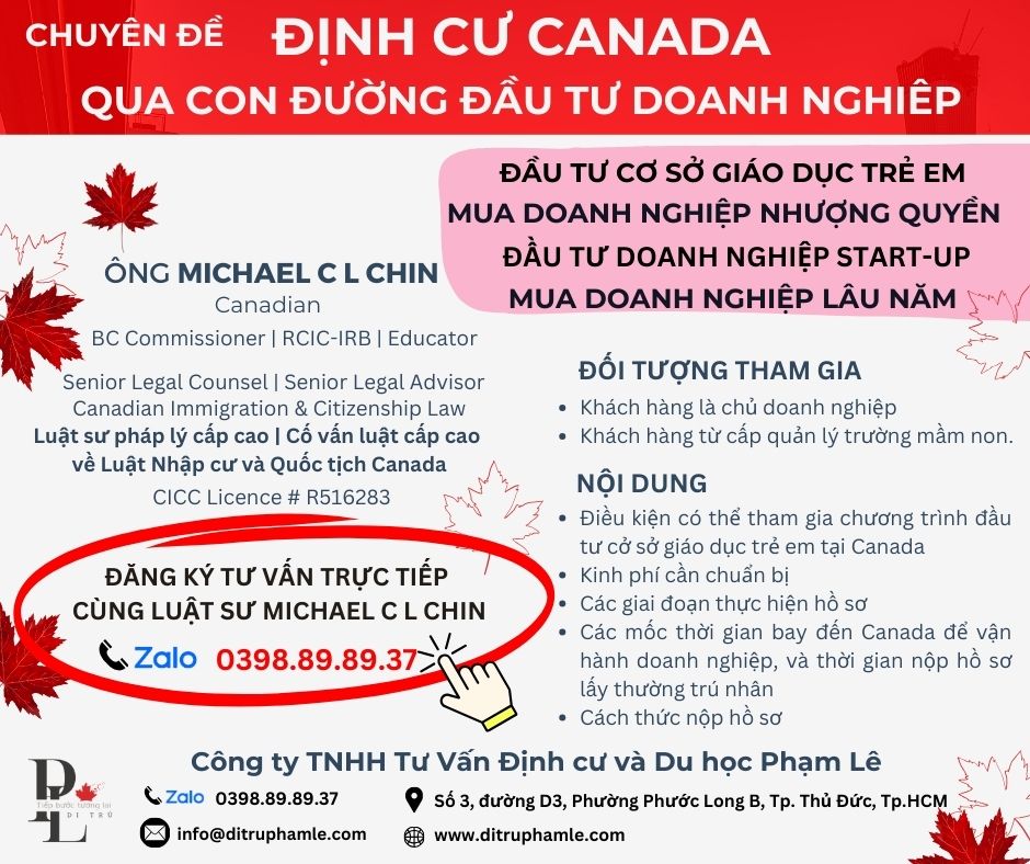 Tại Công Ty TNHH Tư Vấn Định Cư và Du Học Phạm Lê (Di trú Phạm Lê), chúng tôi cam kết cung cấp dịch vụ hỗ trợ di trú chuyên nghiệp, phù hợp với các quy định và tiêu chuẩn mới nhất của Cơ Quan Di Trú, Tị Nạn và Quốc Tịch Canada (IRCC). Hợp tác cùng ông Michael Chin, một cố vấn pháp lý và người hành nghề pháp lý nổi tiếng và có uy tín cao tại Canada , chúng tôi mang đến những giải pháp toàn diện cho các cá nhân và gia đình đang mong muốn định cư tại Canada.